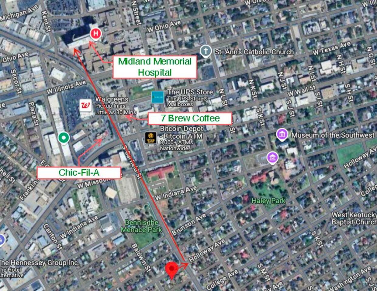 The home is less than 2 minutes from Midland Memorial Hospital. It is 5 minutes to downtown Midland and the business district. It also provides easy access to business 20 and Interstate 20 for your commute to and from work. Chic-Fil-A is less than 2 mins away. So is 7-Brew Coffee & Shipley Donuts. There are a wide selection of other local and chain restaurants directly up Andrews Hwy from the home as well as great shopping and grocery stores. Features You'll Love: Fully Renovated: Fresh, modern design with thoughtful touches throughout All Utilities Included: No hassle, all-included utilities make your stay easy Fully Stocked Kitchen: Gas stove, all appliances, cookware, dishes – just bring your ingredients! Modern Entertainment: Flat-screen TVs for relaxing evenings in Work-Ready: Lightning-fast internet service, perfect for remote work or streaming In-Unit Washer & Dryer: No need for laundromats or shared spaces Beautiful Landscaping: Enjoy your morning coffee outside in a well-kept, serene setting Whether you're here for work or an extended getaway, this home is designed to offer everything you need for a comfortable, stress-free stay. Don't miss the opportunity to live in a prime location with all the conveniences you could ask for!