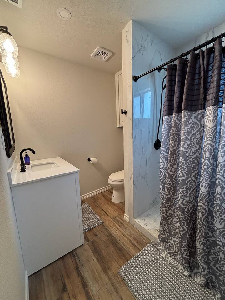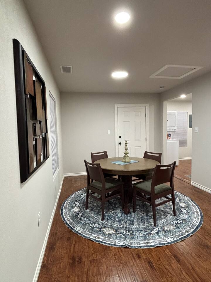 Welcome to Pumpjack Place, a peaceful retreat in a quiet neighborhood just minutes from Midland Memorial Hospital and Midland’s shopping and dining scene. This private, detached cottage sits behind a larger duplex, offering added privacy. Enjoy comfortable beds, an in-unit washer and dryer, and a shaded private outdoor space—perfect for a relaxing home away from home in Midland.