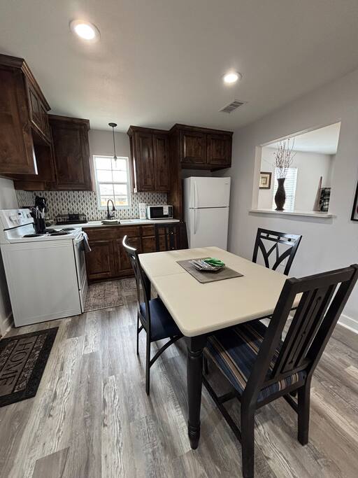 Welcome to your comfy retreat at Stay 432! This beautiful 2BR/1BA home is just blocks from downtown Midland and 4 minutes from the hospital. It’s fully furnished to make it your home away from home. - Fully equipped kitchen w/full sized fridge, stove, oven, pots & pans - Full size washer/dryer - High speed WiFi - Blackout curtains - Walk in shower - Comfy queen sized beds - Off-street parking next to front door - Cute, cozy, & safe for traveling worker - Central HVAC & all utilities paid