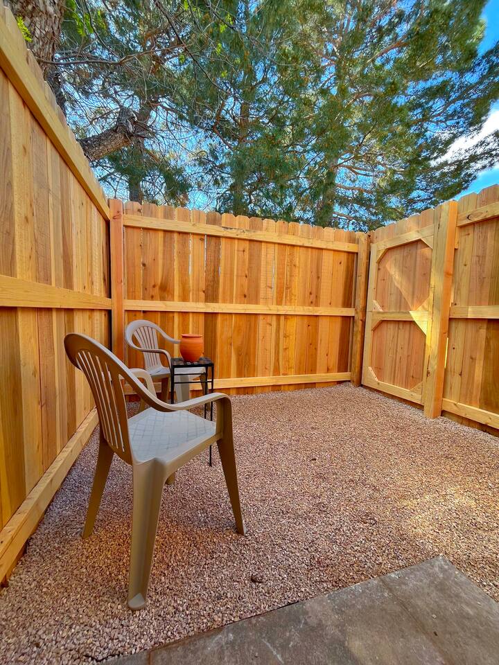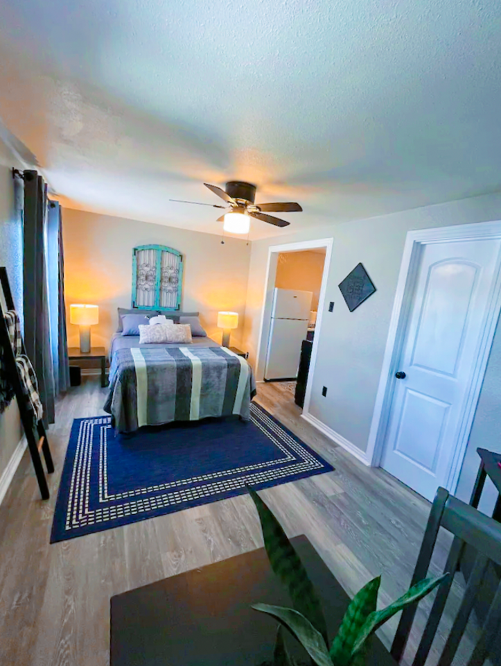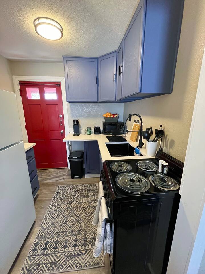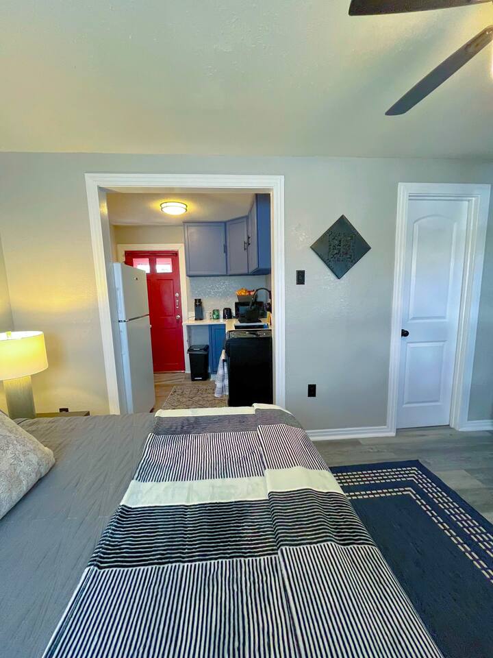 Welcome to the Studio at Comanche Crossing. This cottage is a detached home behind the main residence at in a great neighborhood. The place is fully furnished and well appointed with all of the things a traveling professional will need to feel like this is their home away from home. A comfy bed, flat screen TV, full kitchen including cookware, fridge, cooktop, oven, microwave, & coffee maker ensure this place has just about everything you need. Also has full kitchen & full bathroom.