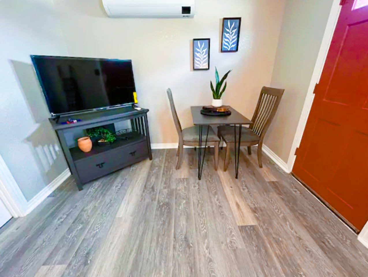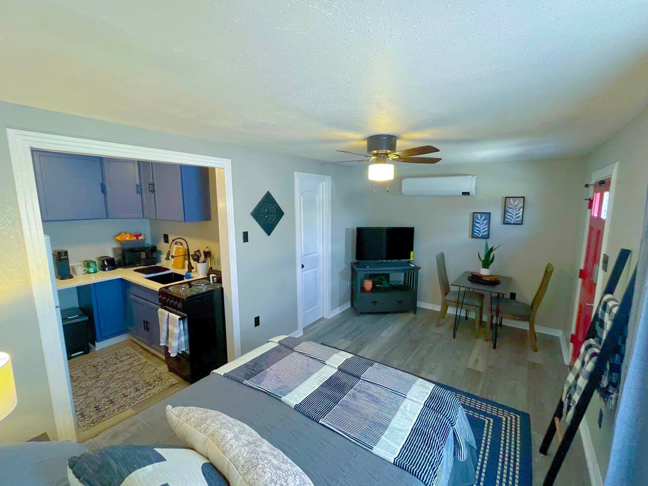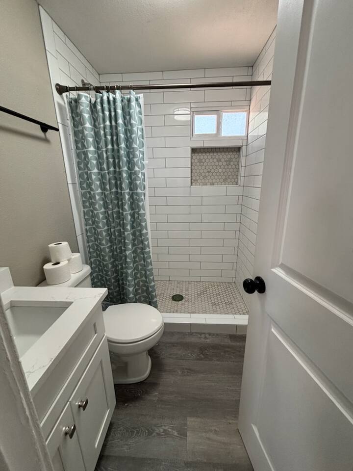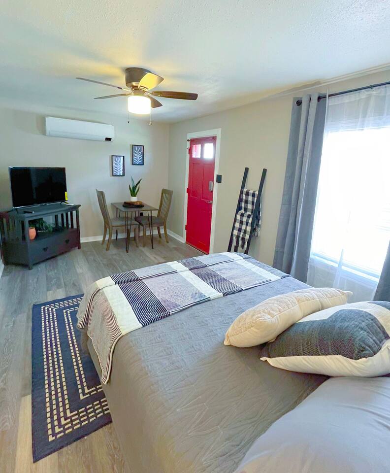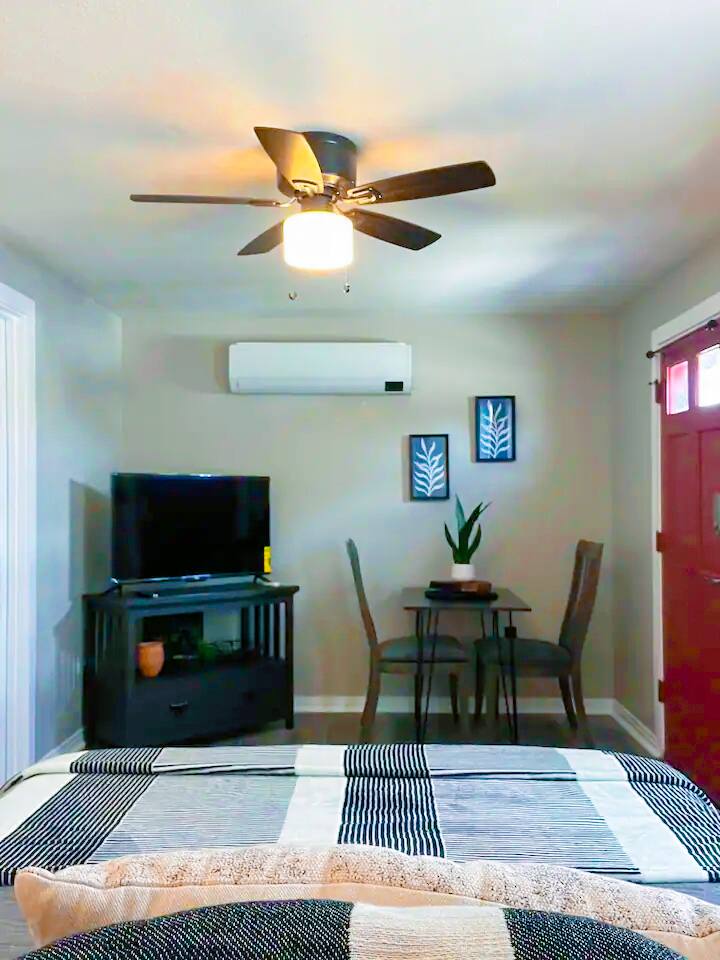 This is a cute and cozy studio cottage which is a detached home behind the main residence at in a great neighborhood. The cottage is fully furnished and well appointed with all of the things a traveling professional will need to feel like this is their home away from home. Furnished with comfy bed, flat screen TV, full kitchen including cookware, fridge, cooktop, oven, microwave, & coffee maker. The home has a full bathroom and nice sized closet. An enclosed seating area behind the home adds charm.