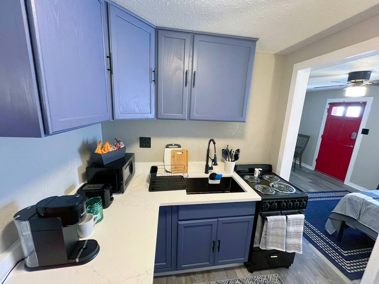 Guests are provided with a unique code to the keyless deadbolt which grants access for the duration of their stay.